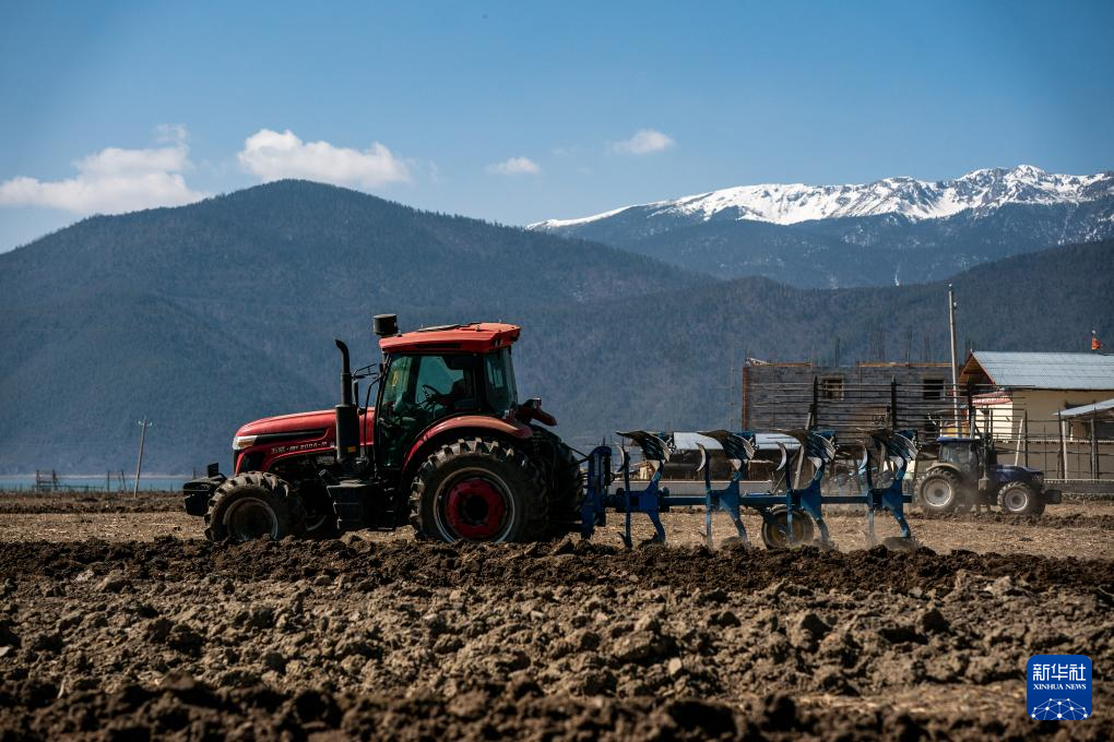 2023年3月8日,在香格里拉市建塘鎮,農民駕駛農用機械犁地。新華社記者 胡超 攝