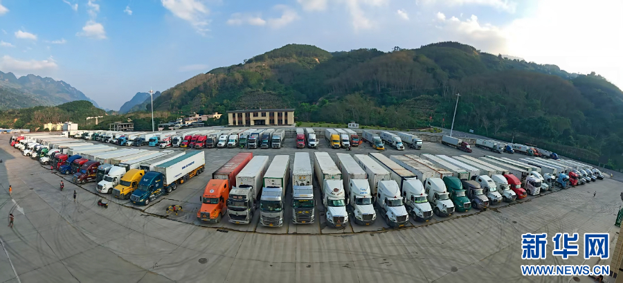 航拍天??诎秶H貨場(資料圖)。新華網發(麻栗坡縣委宣傳部供圖)