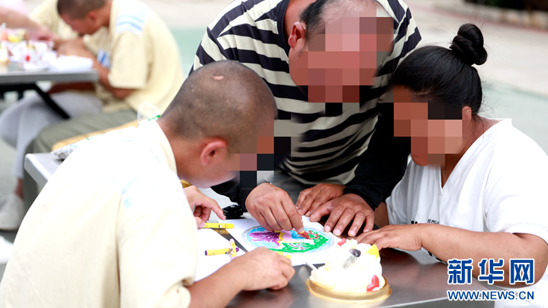 未成年犯和父母一起完成母子鹿曼陀羅圖案彩繪(5月14日攝)。新華網發(劉云 攝)