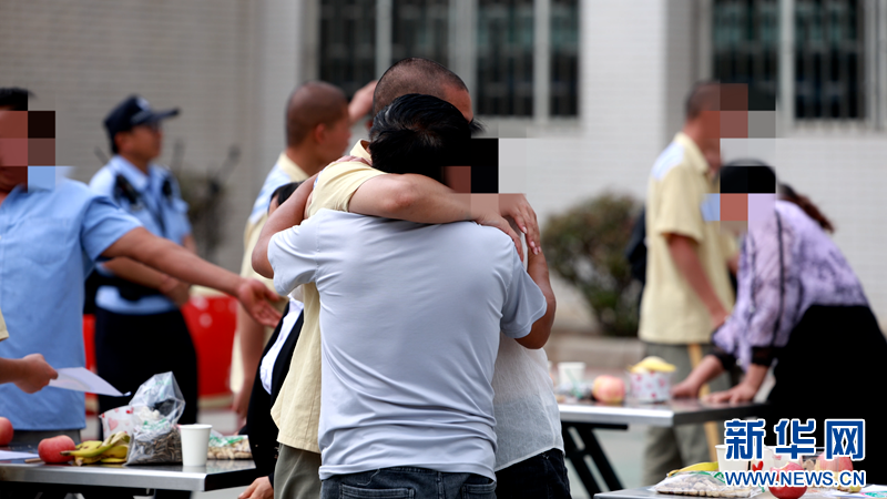 未成年犯將彩繪的母子鹿曼陀羅圖送給家長,并深情相擁(5月14日攝)。新華網發(劉云 攝)