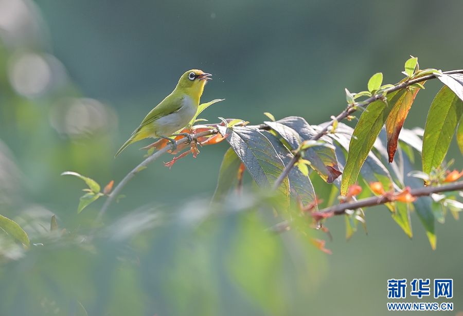 繡眼鳥立于樹枝上(5月12日攝)。新華網發(楊學飛 攝)