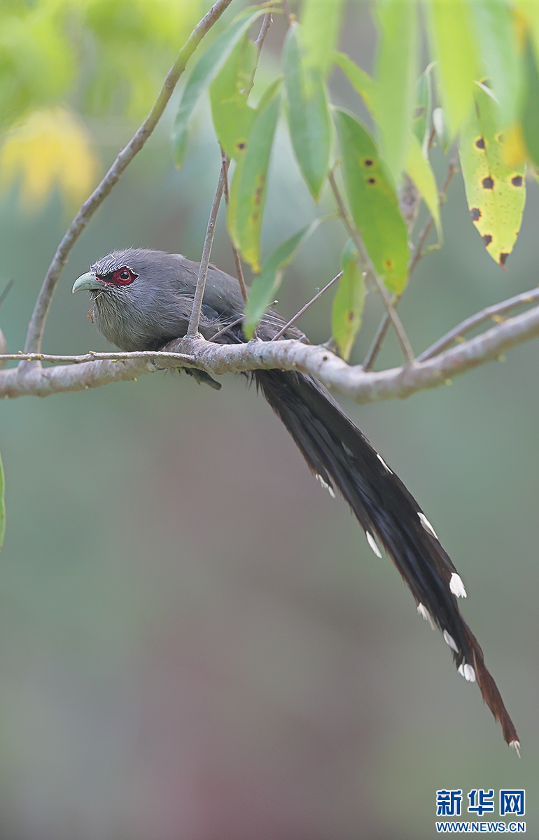 綠嘴地鵑在樹枝上等待捕食毛毛蟲(5月12日攝)。新華網發(楊學飛 攝)