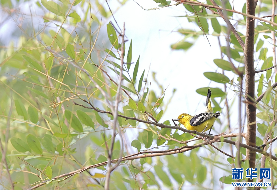 細嘴黃鸝在“鳴唱”(5月12日攝)。新華網發(楊學飛 攝)