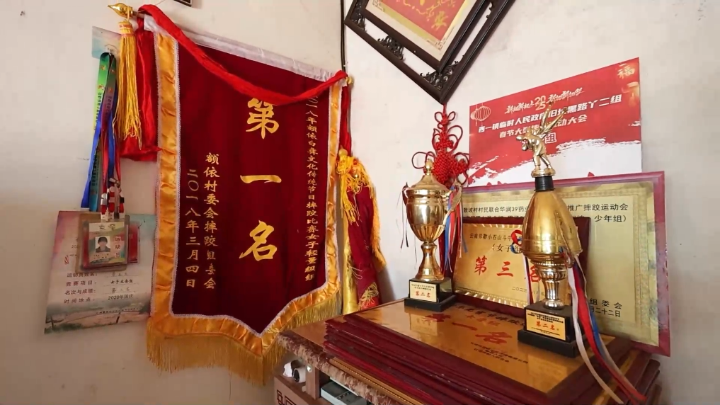 “冠軍”“大力士”“第一名”……三十余年來,在云南省石林、師宗、陸良、瀘西、彌勒等市縣的摔跤場上,一位名叫昂玉蘭的阿詩瑪拿下了一百多個獎項。她是國家級非物質文化遺產代表性項目彝族摔跤縣級代表性傳承人,她的家里放滿了金晃晃的獎牌。
