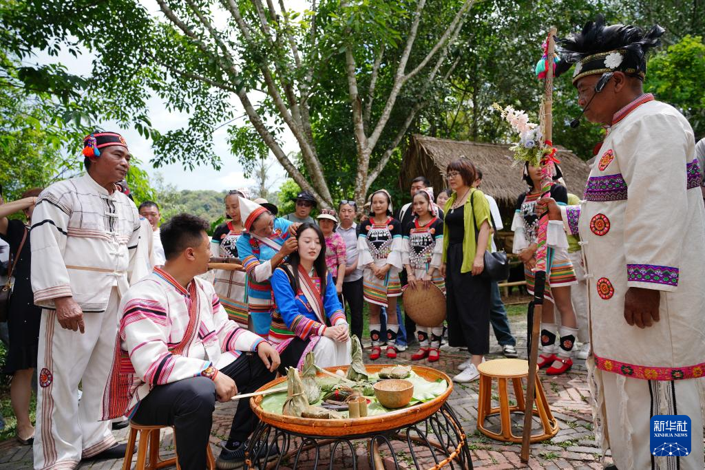 5月16日,游客在基諾山寨景區體驗基諾族成人禮。