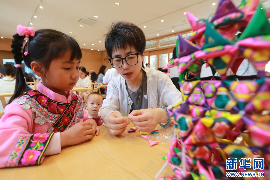 恰逢“六一”遇上端午節假期,云南省蒙自市紅河書院開展“菱角織夏 艾草寄情”端午民俗親子手作課(5月31日攝)。新華網發(薛瑩瑩 攝)