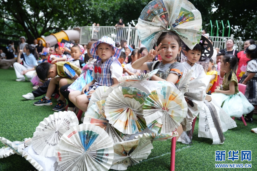 云南省水富市一幼兒園舉辦親子環保時裝秀迎“六一”(5月29日攝)。新華網發(狄廷秀 攝)