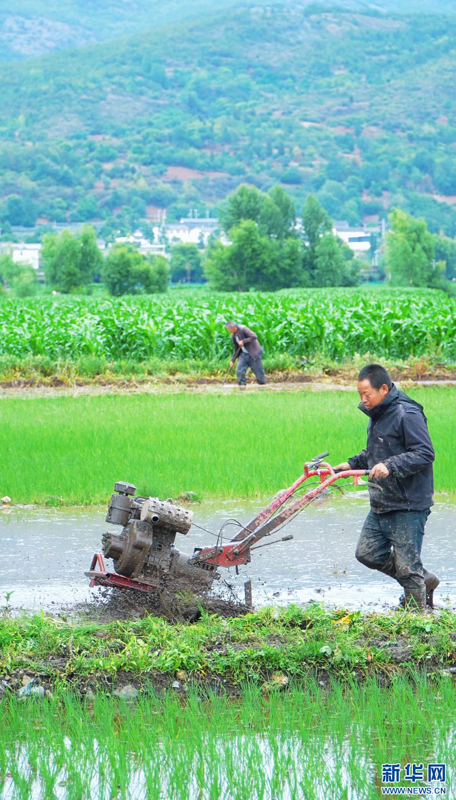 云南劍川:逢農時插秧忙 賞稻田披新綠