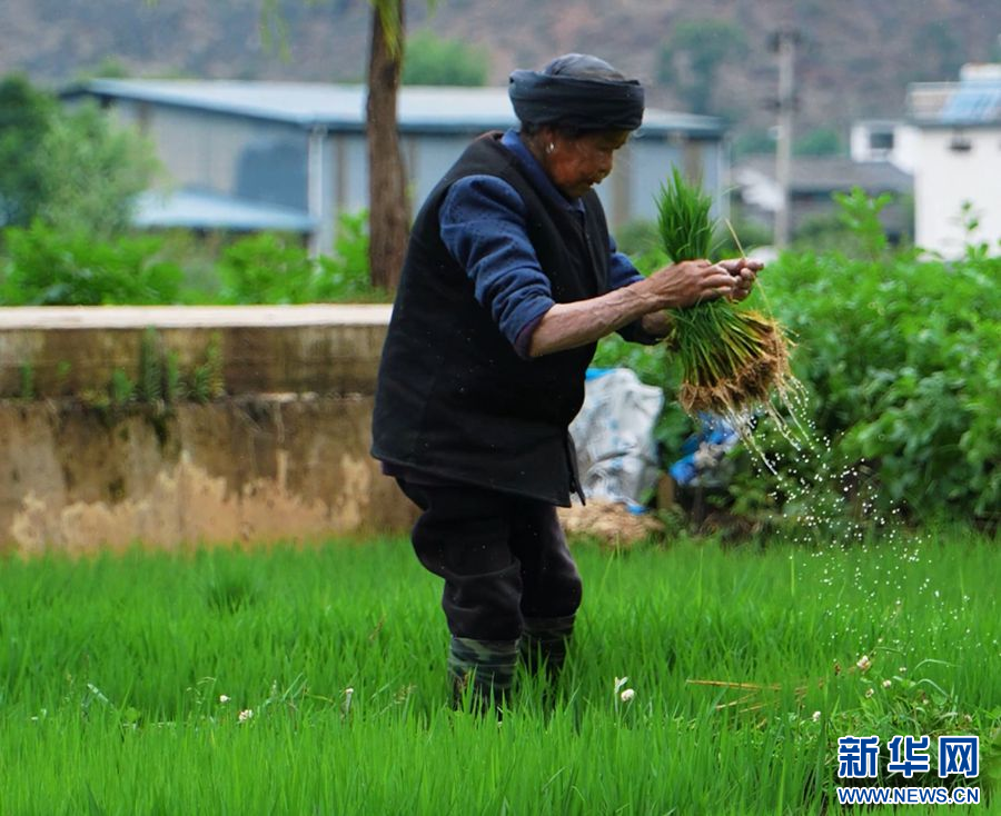 正在插秧的群眾(6月1日攝)。新華網發(大理市融媒體中心供圖)