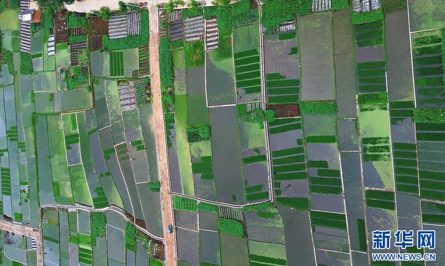 航拍稻田(6月1日攝)。新華網發(大理市融媒體中心供圖)