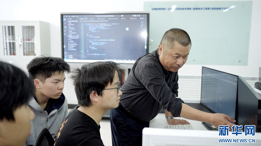 陶冠華指導學生熟悉課程內容(5月7日攝)。新華網發(李宗蓉 攝)