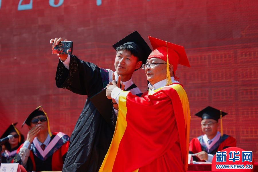 畢業生和校長花式合影(612日攝)。新華網發(宋瑞成 攝)