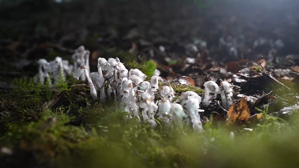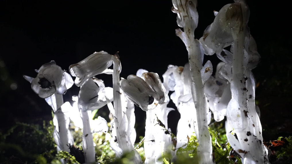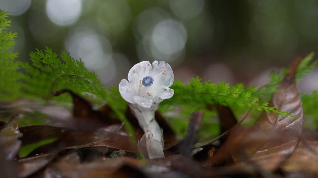 水晶蘭通體潔白、晶瑩剔透,屬國家近危級珍稀植物,身為植物卻不含葉綠素,無法進行光合作用,對自然生長環境要求苛刻,較為罕見。