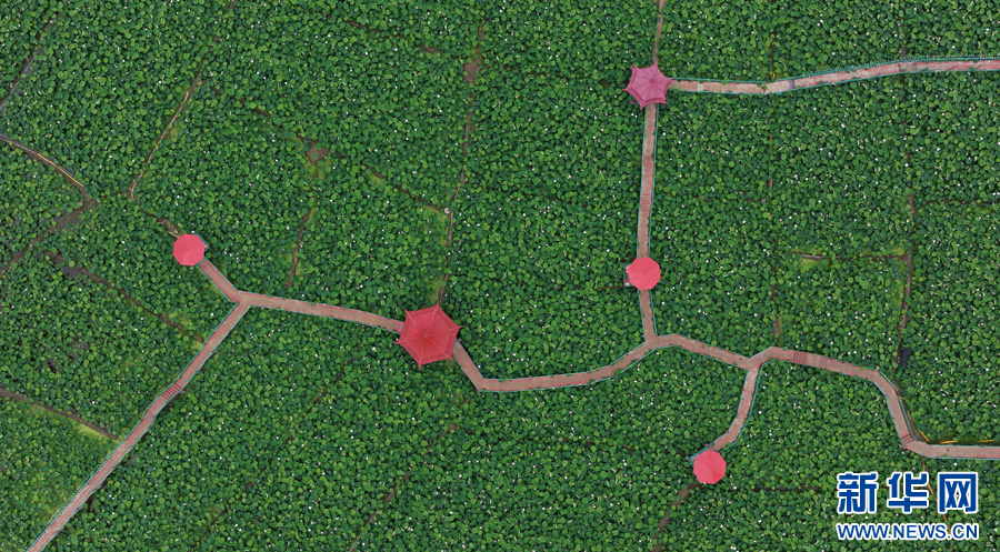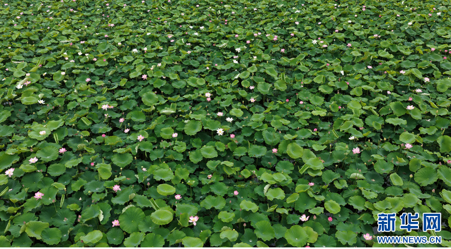 航拍三川鎮荷塘 (6月10日攝)。新華網發(楊波 攝)