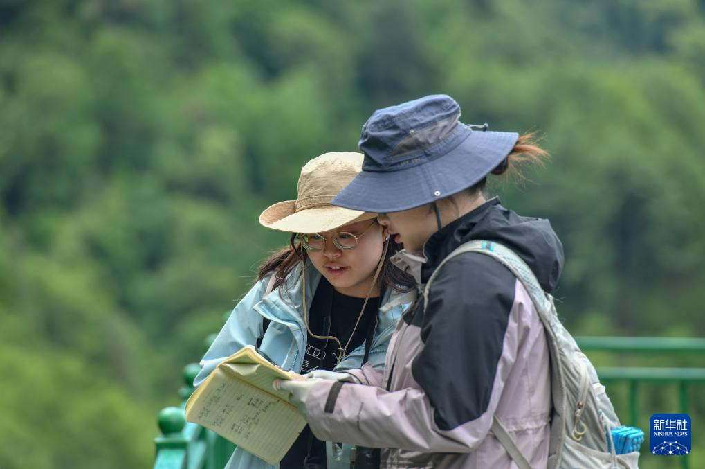 6月15日,西華師范大學研究生在保護區內記錄滇金絲猴活動軌跡。新華社發(彭奕凱 攝)