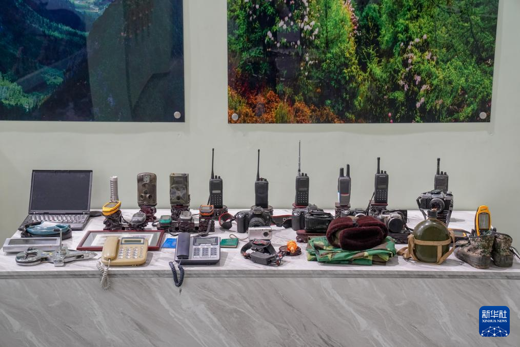 6月15日在白馬雪山保護區成果展廳拍攝的歷代保護區工作人員所使用的部分設備。新華社發(彭奕凱 攝)