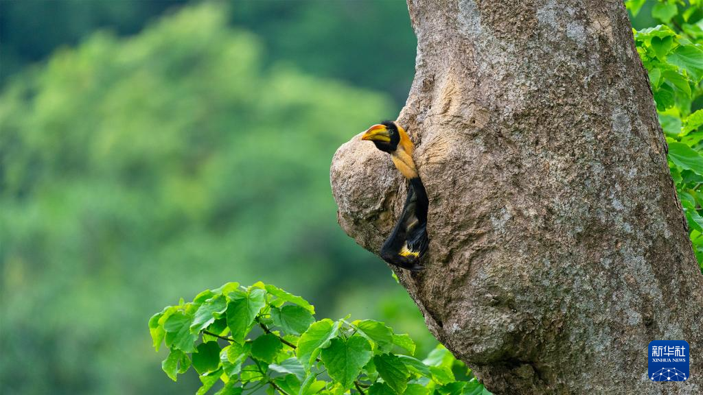 據了解,2025年該區域共有28窩犀鳥入巢繁殖,這是今年首只出巢的犀鳥寶寶。
