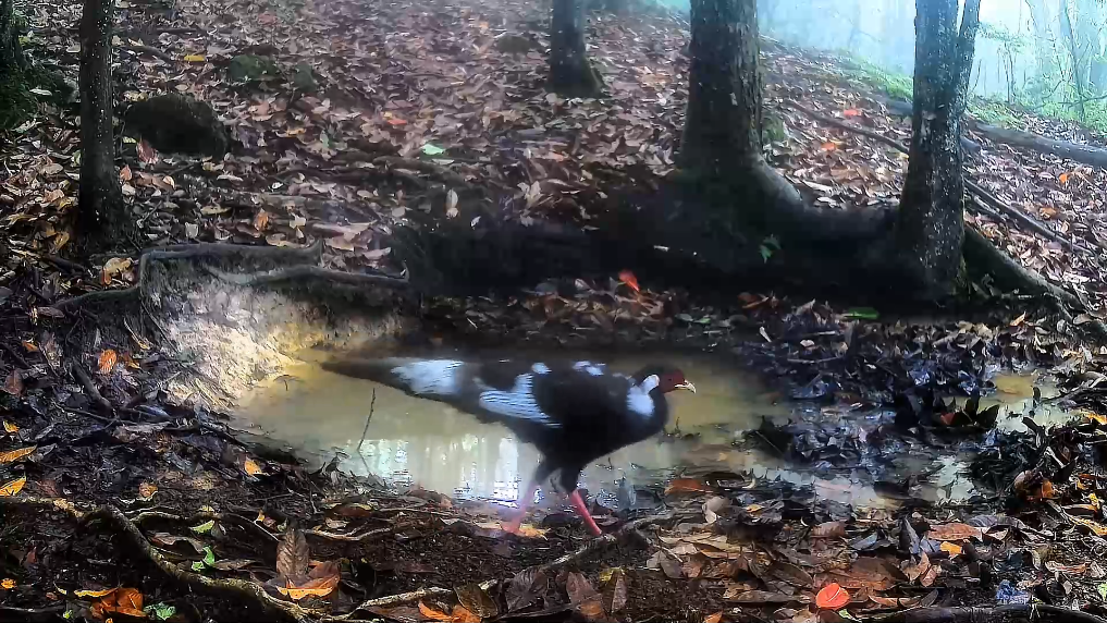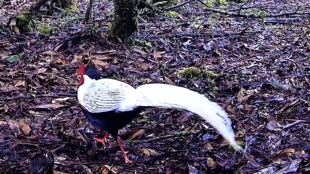 近日,云南烏蒙山國家級自然保護區科研人員收集整理羅漢壩片區的紅外線相機監測數據時,發現多段國家二級保護野生動物亞成體白鷴雄鳥在林中覓食的影像。