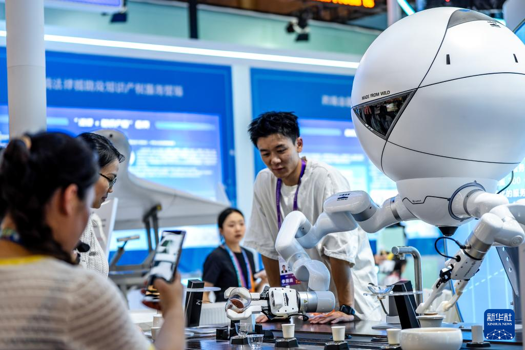 這是第9屆中國—南亞博覽會上展出的泡茶機器人(6月19日攝)。新華社記者 胡超 攝
