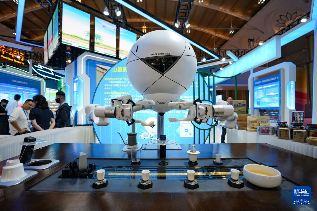 這是6月19日拍攝的第9屆中國—南亞博覽會上展出的泡茶機器人。新華社記者 陳欣波 攝