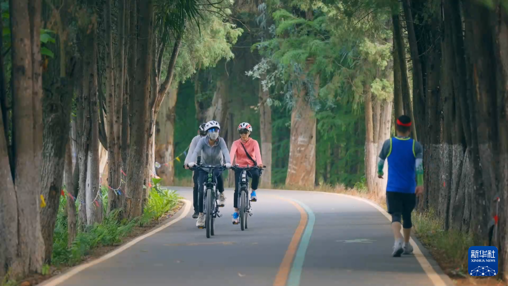 沿滇池綠道,人們或騎行漫步,或駐足賞景,或支帳露營、悠然小憩,人與自然和諧交融,共繪一幅清新愜意的滇池夏日畫卷。