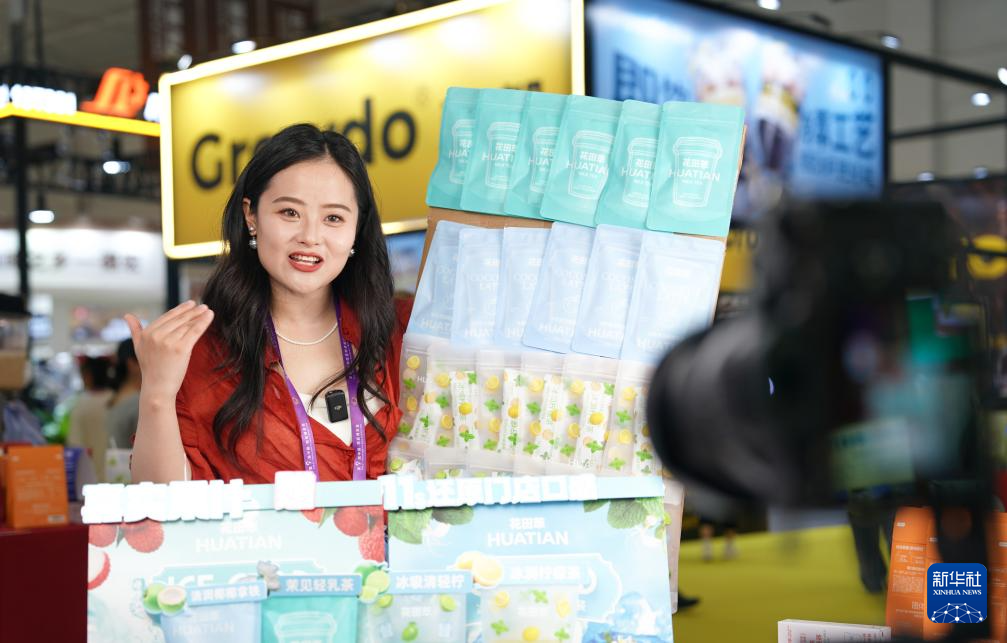 6月20日,主播在咖啡產業館直播售賣咖啡產品。新華社記者 陳欣波 攝