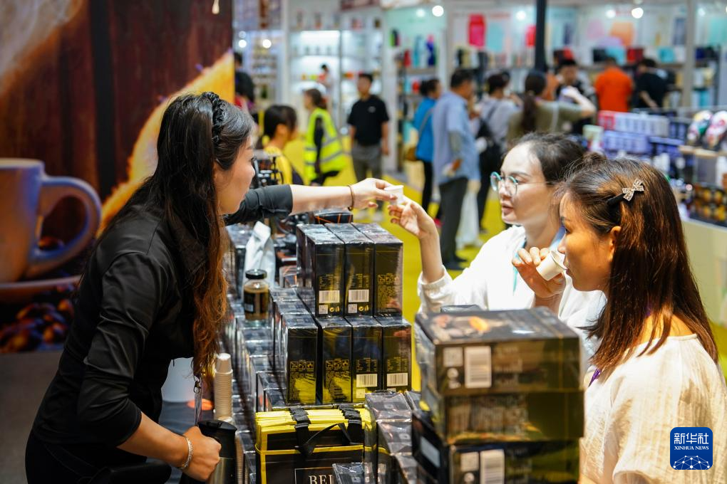 6月20日,觀眾在咖啡產業館品嘗咖啡。新華社記者 陳欣波 攝