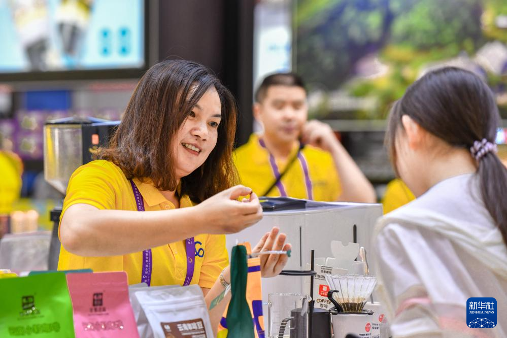 6月20日,顧客在咖啡產業館品嘗咖啡。新華社發(彭奕凱 攝)