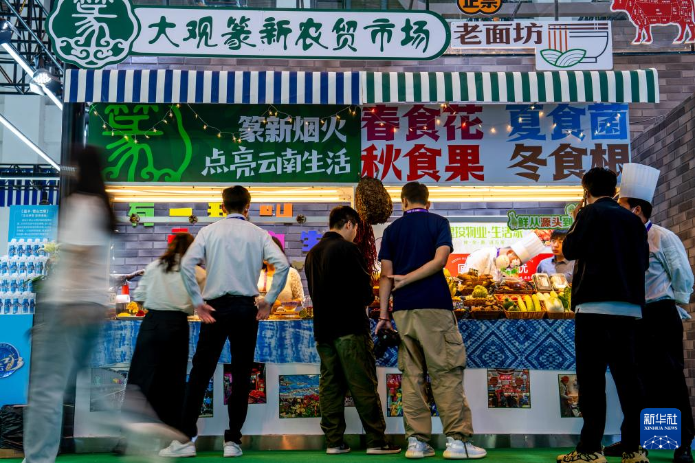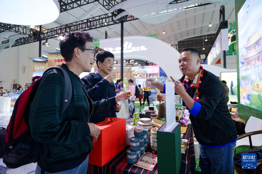 6月20日,觀眾在第9屆中國—南亞博覽會旅居云南館選購特色食品。新華社記者 胡超 攝