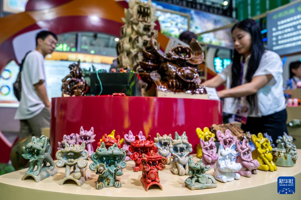 6月20日,觀眾在第9屆中國—南亞博覽會旅居云南館非遺瓦貓展臺參觀。新華社記者 胡超 攝