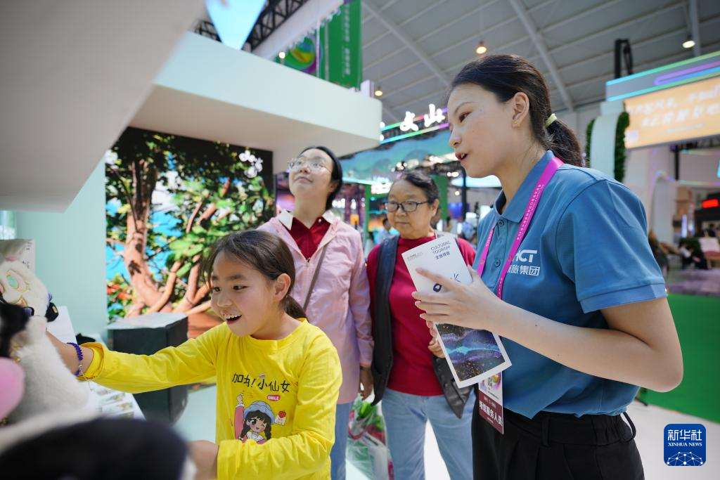 6月20日,觀眾在第9屆中國—南亞博覽會旅居云南館給孩子拍照留念。新華社記者 胡超 攝