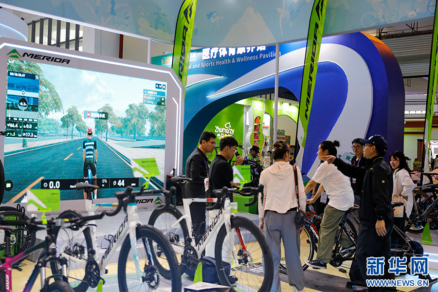 市民在云南體育展區體驗自行車運動(6月20日攝)。新華網發