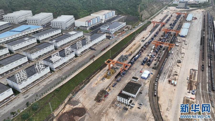 航拍視角下的騰俊國際陸港多式聯運公鐵物流中心(攝于7月4日)。新華網發(劉云 攝)