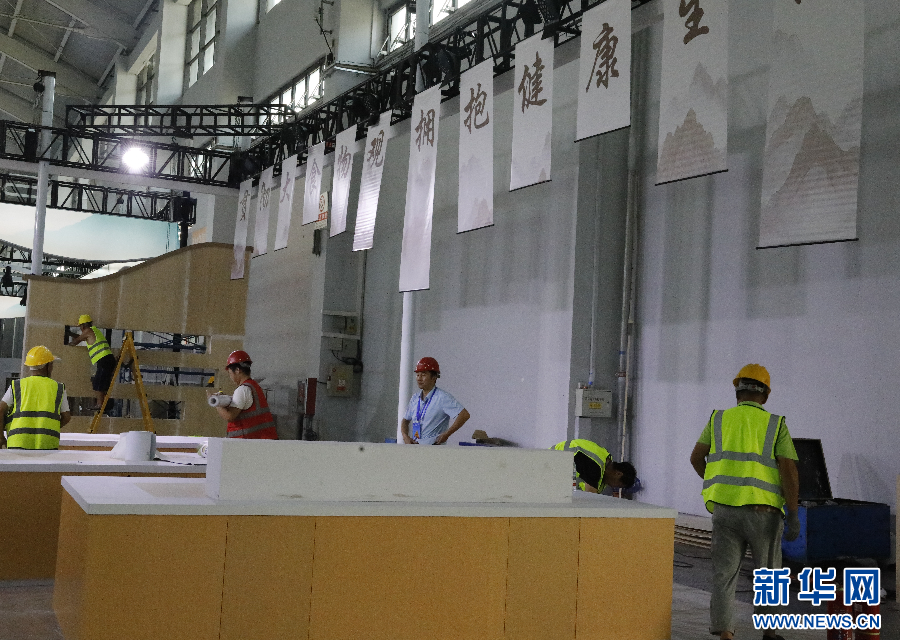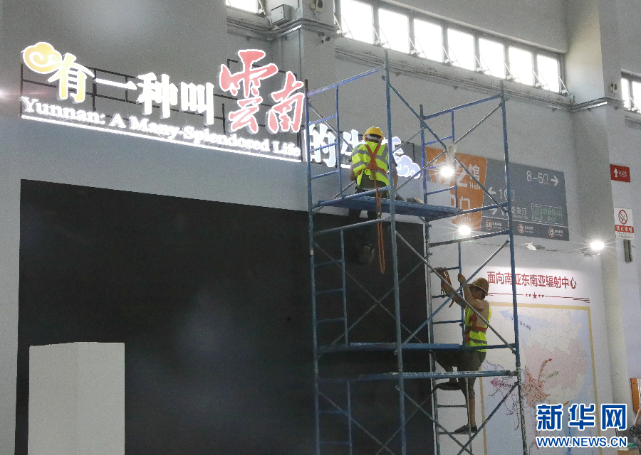 云南特裝館正在布展(7月10日攝)。新華網發(楊楨宇 攝)