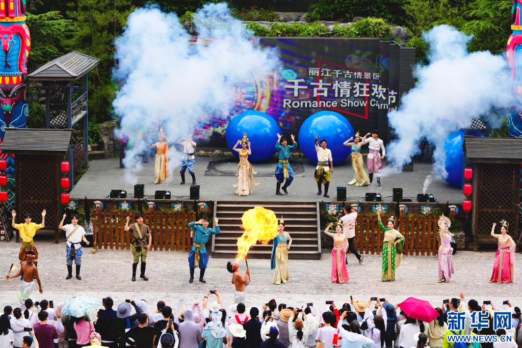 近日,麗江千古情景區暑期活動“千古情狂歡節”開放探營,一場融合民族風情與夏日激情的狂歡盛宴正式開啟,吸引諸多游客前來打卡體驗。