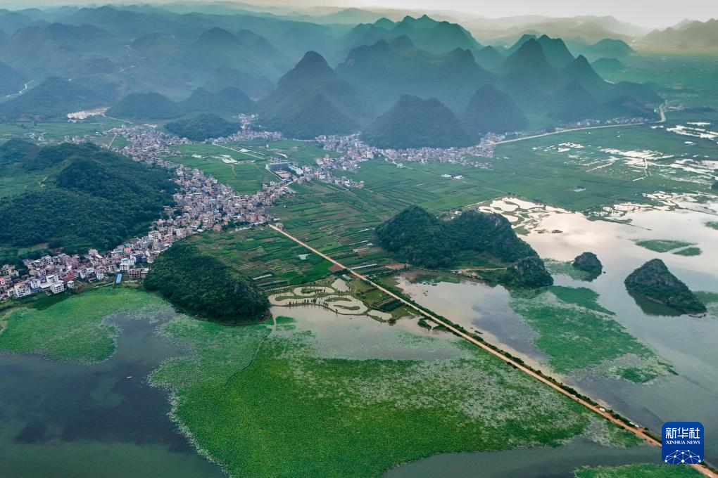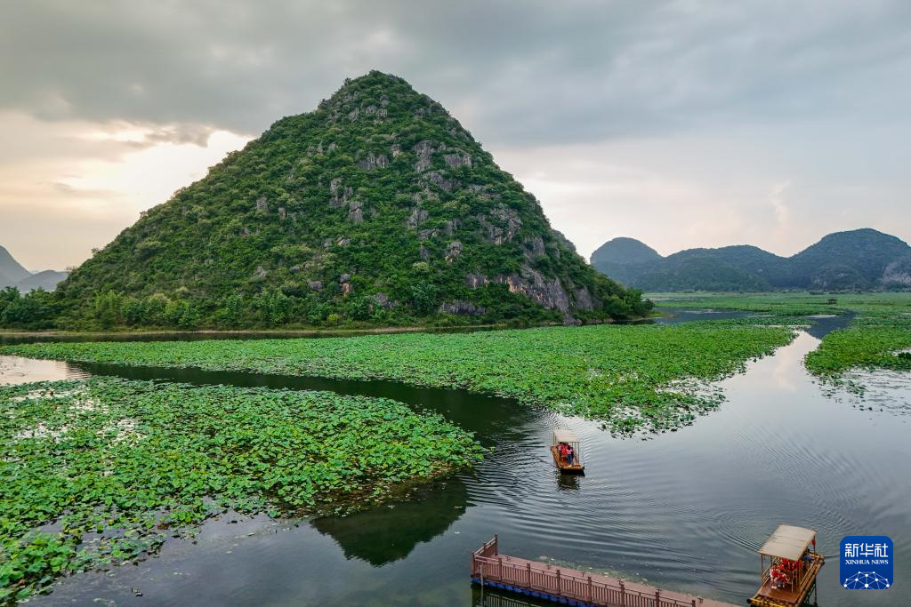 7月15日拍攝的普者黑景區風光(無人機照片)。新華社發(彭奕凱攝)