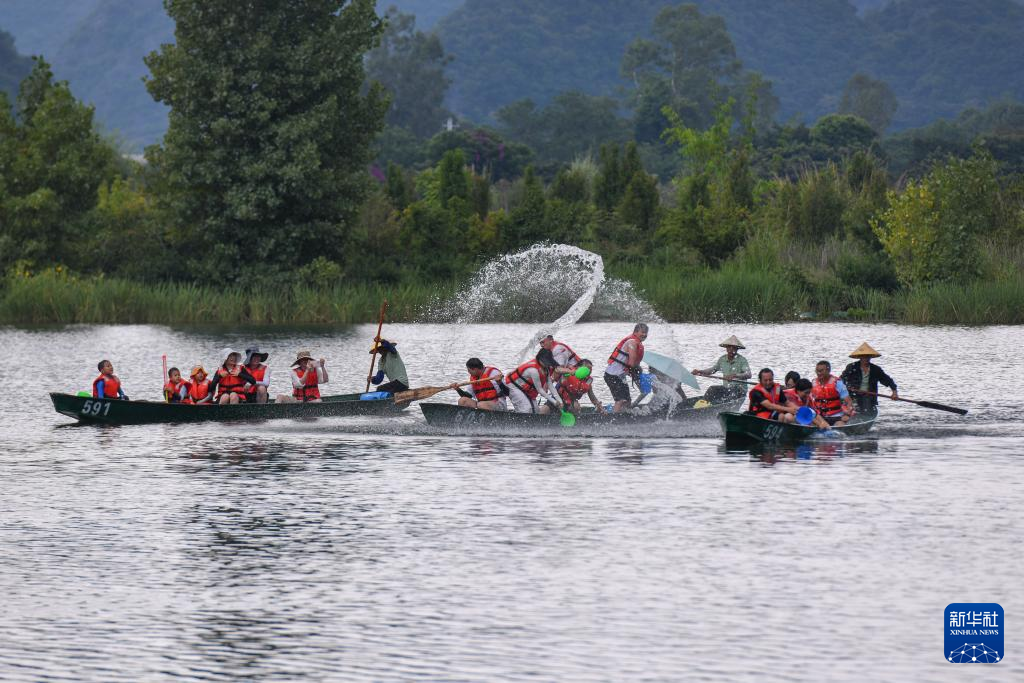 7月15日,游客在普者黑景區內乘船游覽。新華社發(彭奕凱攝)