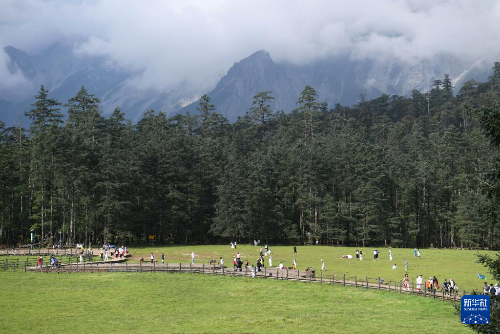 7月14日,游人在云南麗江玉龍雪山景區游玩。新華社發(趙慶祖攝)