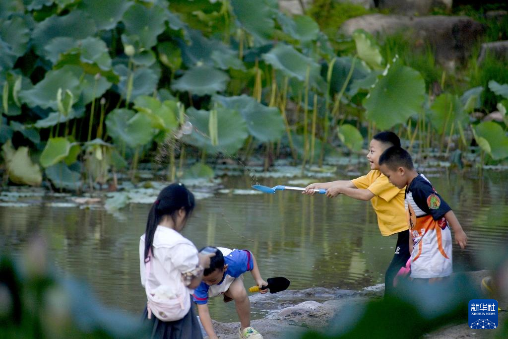 7月14日,孩子們在云南省大理白族自治州南澗彝族自治縣一公園玩耍。新華社發(適志宏攝)