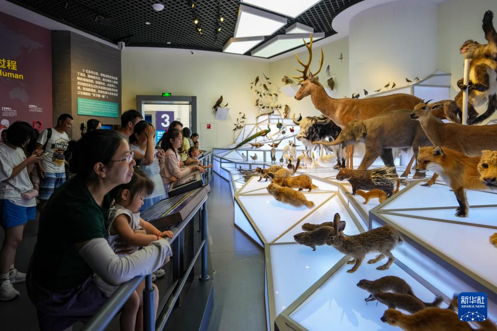 7月15日,游客在澄江化石地世界自然遺產博物館參觀動物標本。新華社記者 陳欣波 攝