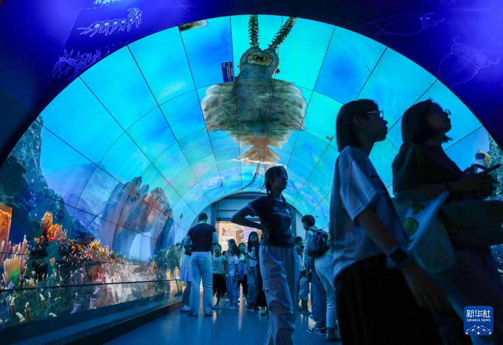 7月15日,游客在澄江化石地世界自然遺產博物館“寒武紀海底隧道”參觀。新華社記者 陳欣波 攝