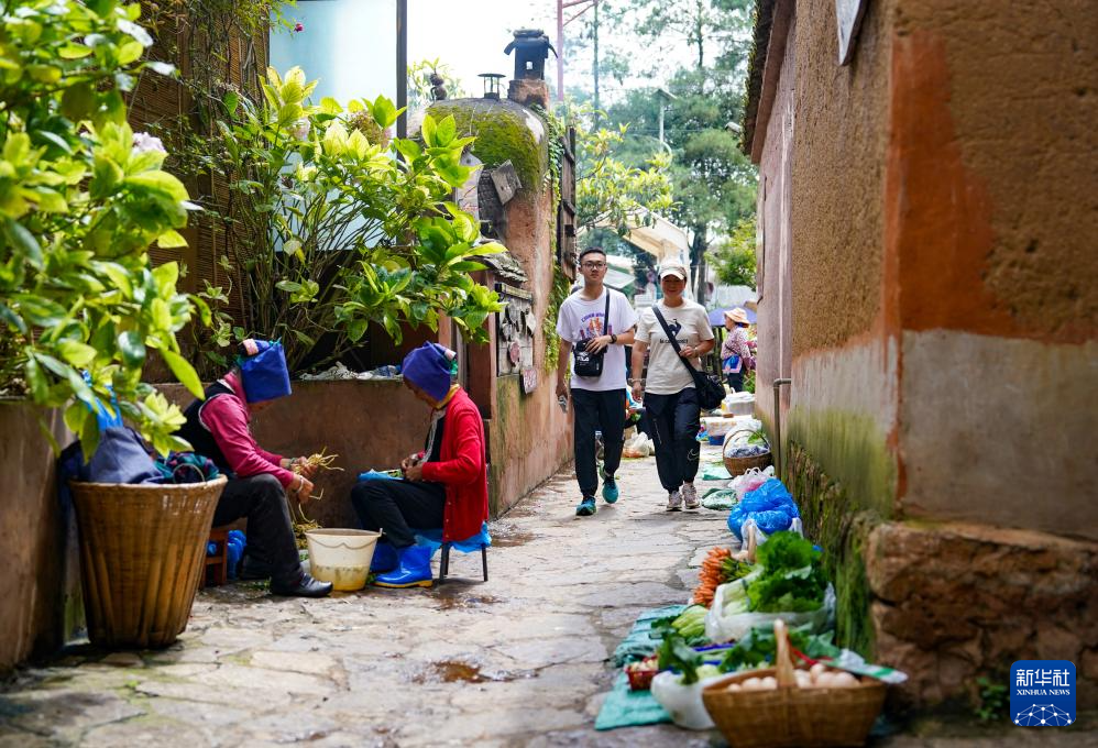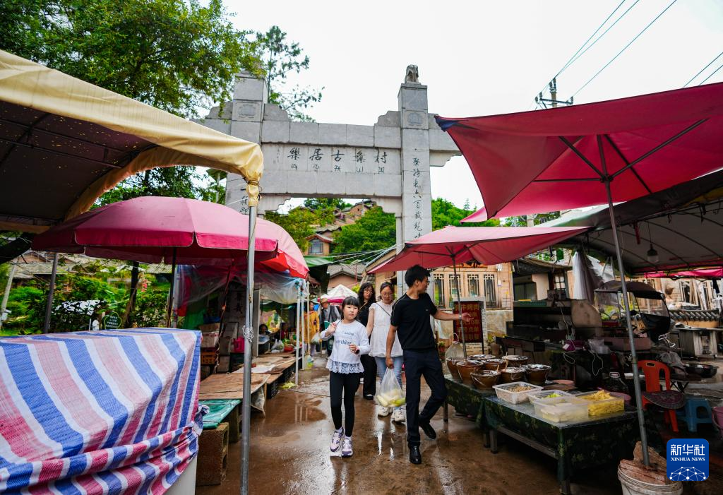 7月23日,游客在樂居村內逛菜市場。新華社記者 陳欣波 攝