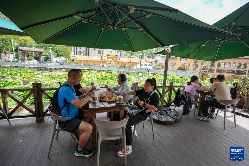 7月27日,游客在樂居村一家餐廳內用餐。新華社記者 陳欣波 攝