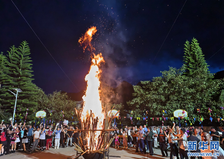 華聯鋅銦職工與各族群眾共同歡度火把節(7月24日攝)。新華網發(華聯鋅銦 供圖)