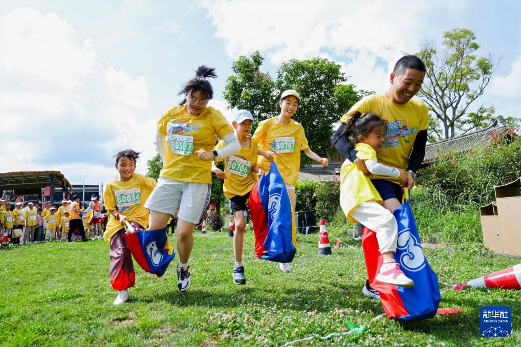 8月10日,參賽者們正參與親子袋鼠跳趣味項目。主辦方供圖