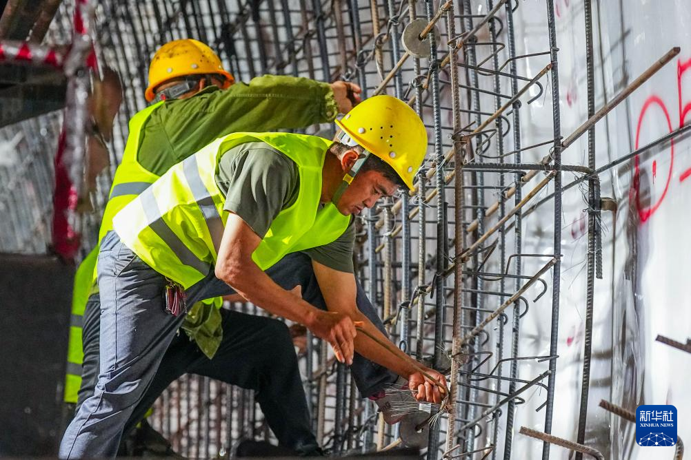 8月19日,中鐵五局的建設者在渝昆高鐵炳輝隧道內作業。新華社記者 胡超 攝