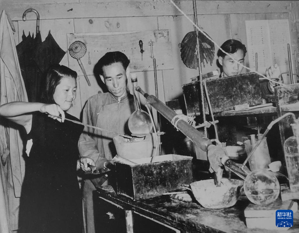 西南聯大學生在做實驗(翻拍照片)。新華社記者 陳欣波 攝