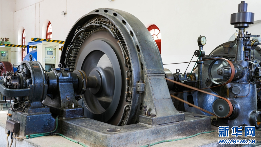 石龍壩水電站建成時的第一臺水輪發電機組歷經百年滄桑至今仍能運轉發電(資料圖)。新華網發(劉云 攝)
