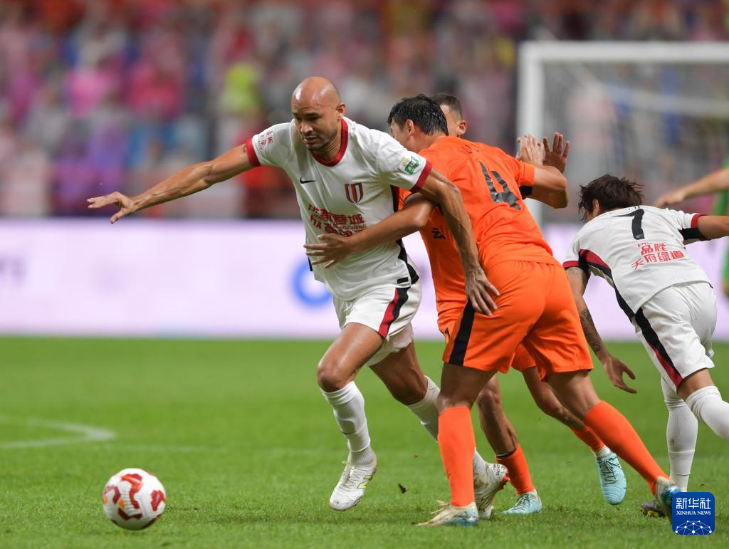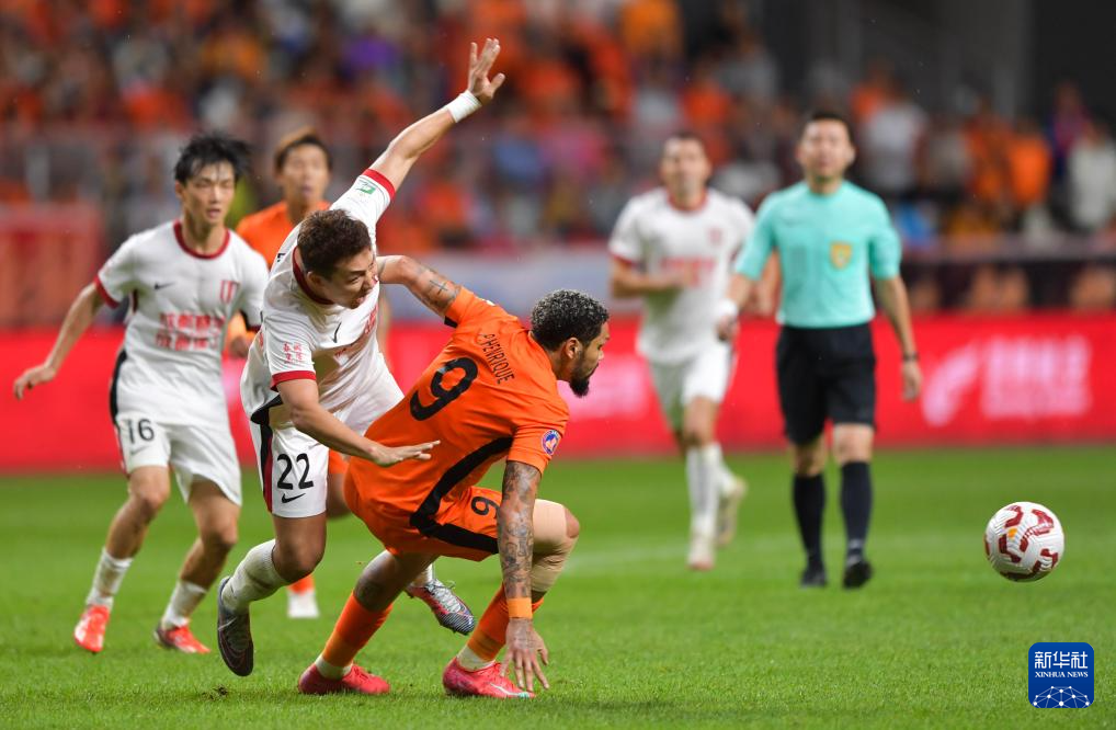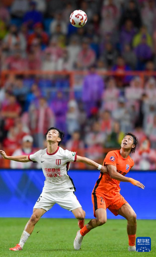 8月23日,成都蓉城隊球員費利佩(左)在比賽中鏟球。新華社記者 陳欣波 攝
