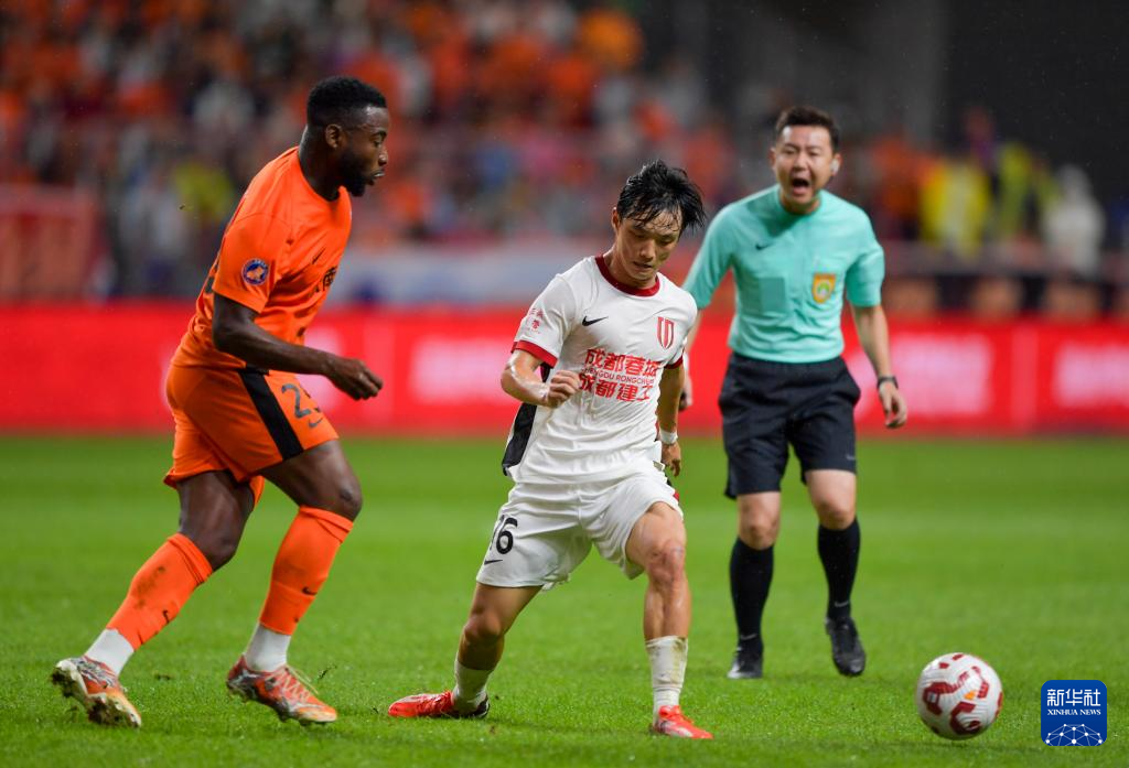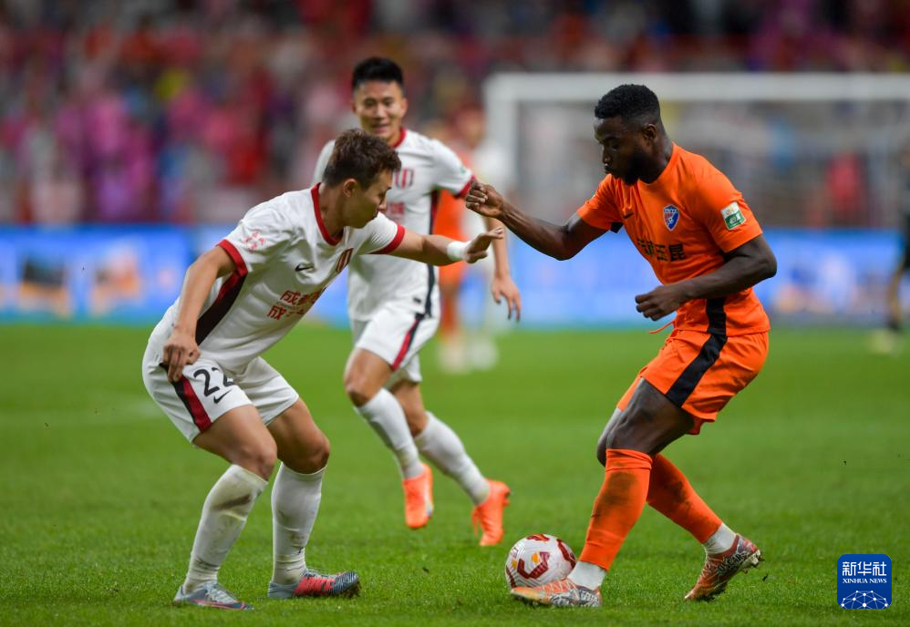 8月23日,成都蓉城隊球員周定洋(中)在比賽中。新華社記者 陳欣波 攝